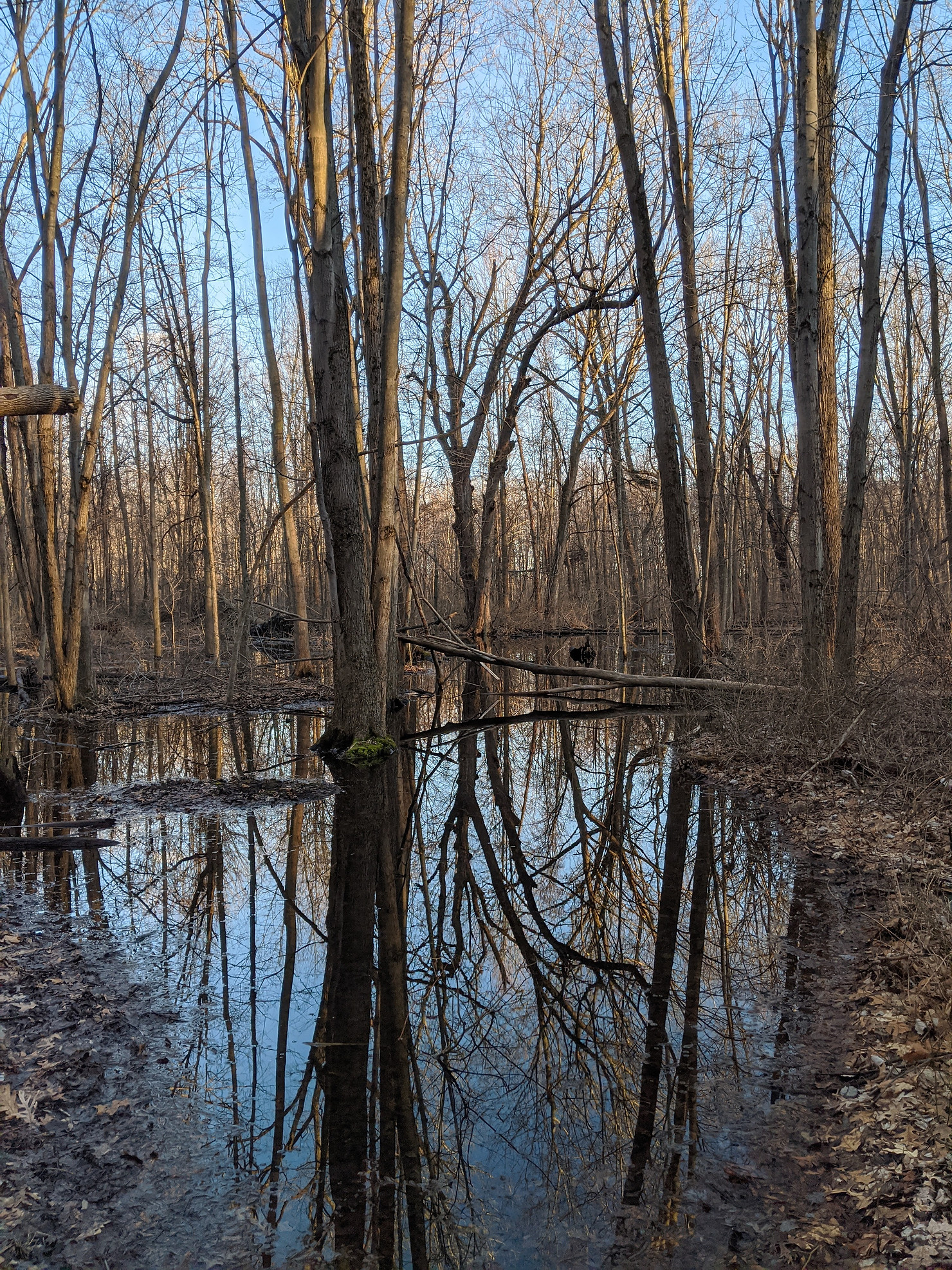 So the very next day, I decided I would go out to the same forest again. Although nothing turned up the day before I wanted to try it anyways. Really I was blinded by pure jealousy; Murphy already found her first Herp of the year and I wanted so desperately to find mine as well. This day would be different though, it was warmer and I was going to venture into an area of the forest that I hadn’t really explored too much. I started walking and stopping to flip logs here and there. Although I wanted to check out a newer area of that forest, I didn’t want to head straight there, so I meandered through sections I flipped the day before. Then it happened. No, a salamander was not found under a log. Instead it was a sound, a sound quite unmistakable, a warning sound to some. It was the drumming of a Pileated Woodpecker. Now I’ve seen Pileateds several times and I’ve written about them in a few posts, but every time I see of hear a bird at a new site, it’s just as exciting to me as seeing it for the first time. Plus, this is just a really cool bird. When I heard it, i was nowhere near it, but I could tell that it was near the area I was going. So I began to heading that direction a little more directly, continuing to flip as I walked. Every few minutes I would hear that drumming, still coming from the same direction.